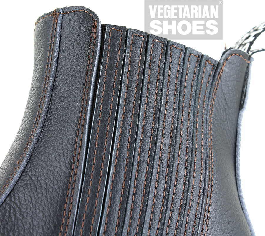 Classy, simple, practical Chelsea boots. Speedy Pull-on convenience, snug elasticated comfort and grippy stitched on rubber soles. In black Vegetan Micro material.